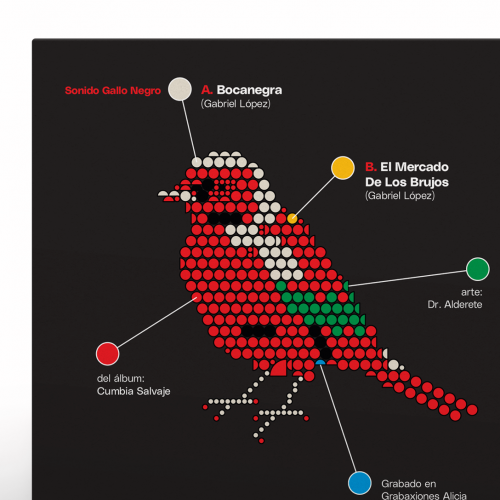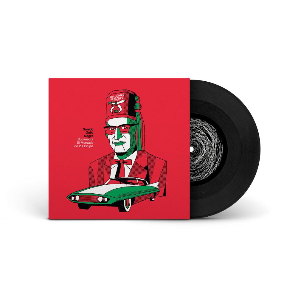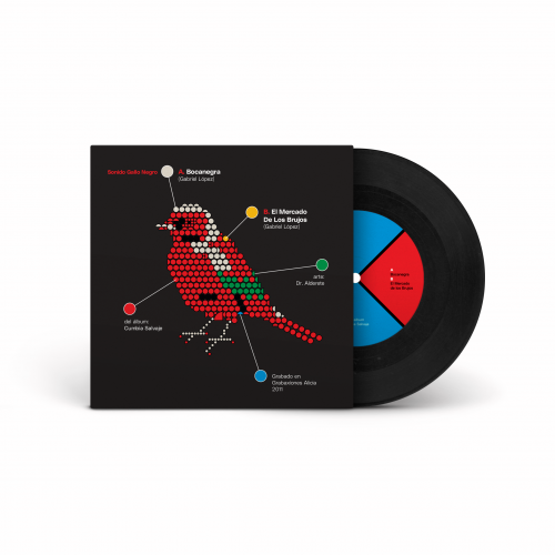 Uno de los 6 discos de vinil en formato de 7" - 45 RPM incluidos en la nueva edición especial de sencillos del Spirit Box de la banda Sonido Gallo Negro.