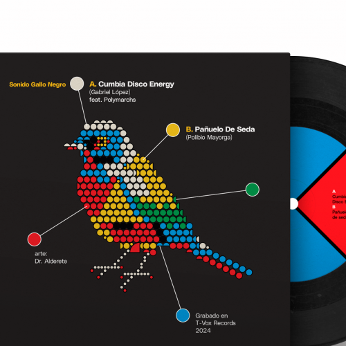 Uno de los 6 discos de vinil en formato de 7" - 45 RPM incluidos en la nueva edición especial de sencillos del Spirit Box de la banda Sonido Gallo Negro.